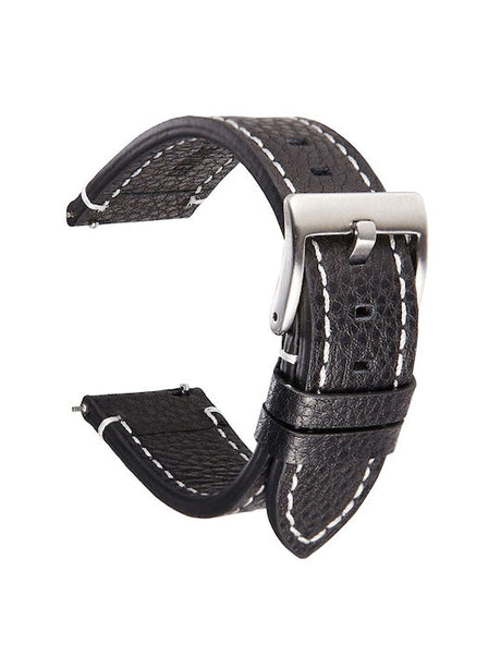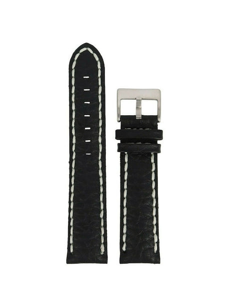 Tzevelion ART252 Δερμάτινο Λουράκι Μαύρο / Λευκό 24mm