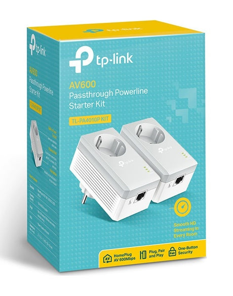 TP-LINK TL-PA4010P KIT v6 Powerline Διπλό για Ενσύρματη Σύνδεση με Passthrough Πρίζα και Θύρα Ethernet