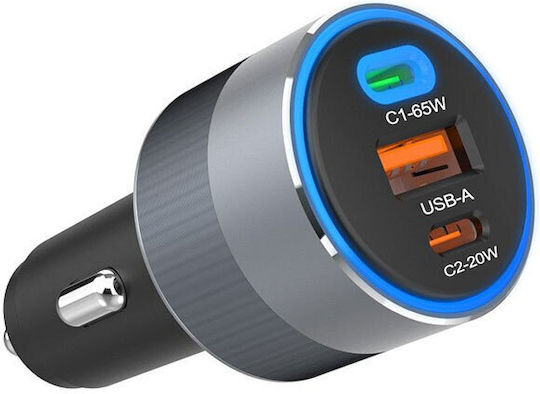 Forcell F-energy Φορτιστής Αυτοκινήτου 85W 3A Γρήγορης Φόρτισης με Θύρες: 1xUSB 2xType-C Γκρι Χρώμα